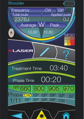 K-Laser’s intuitive software protocol has several dynamic stages during the selected treatment. Its application parameters